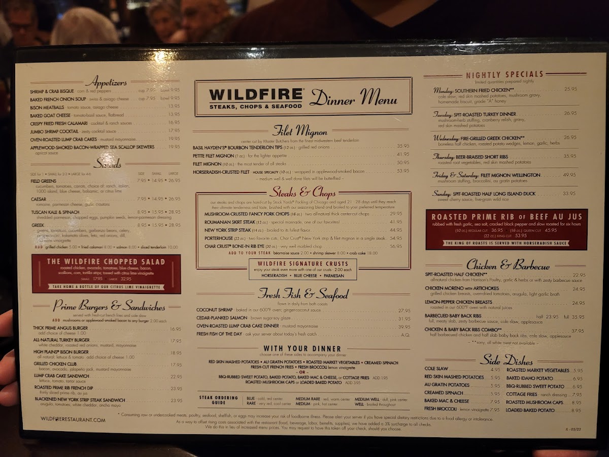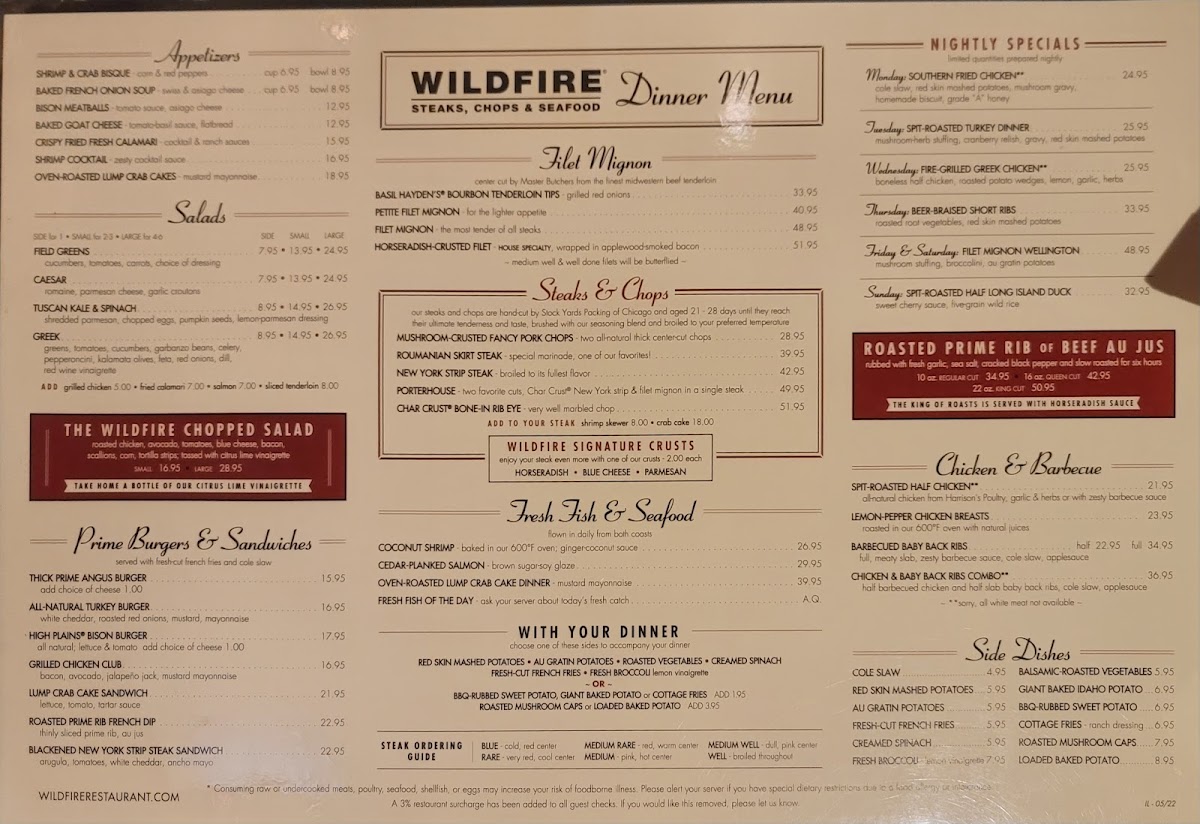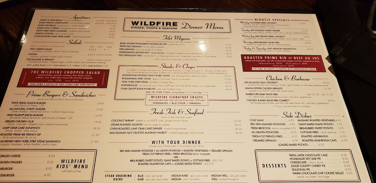 Welcome to Wildfire, an exceptional dining experience located at 1300 Patriot Blvd, Glenview, IL, that promises culinary delights in a stunning setting. Wildfire captivates with its diverse menu featuring tantalizing appetizers such as Mediterranean Chicken Skewers and Applewood Smoked Bacon Wrapped Sea Scallops. Guests rave about the renowned entrees, including the Beer-Braised Short Ribs and exquisite Filet Mignon Wellington. Each dish showcases the restaurant's commitment to quality, making every meal a memorable occasion.